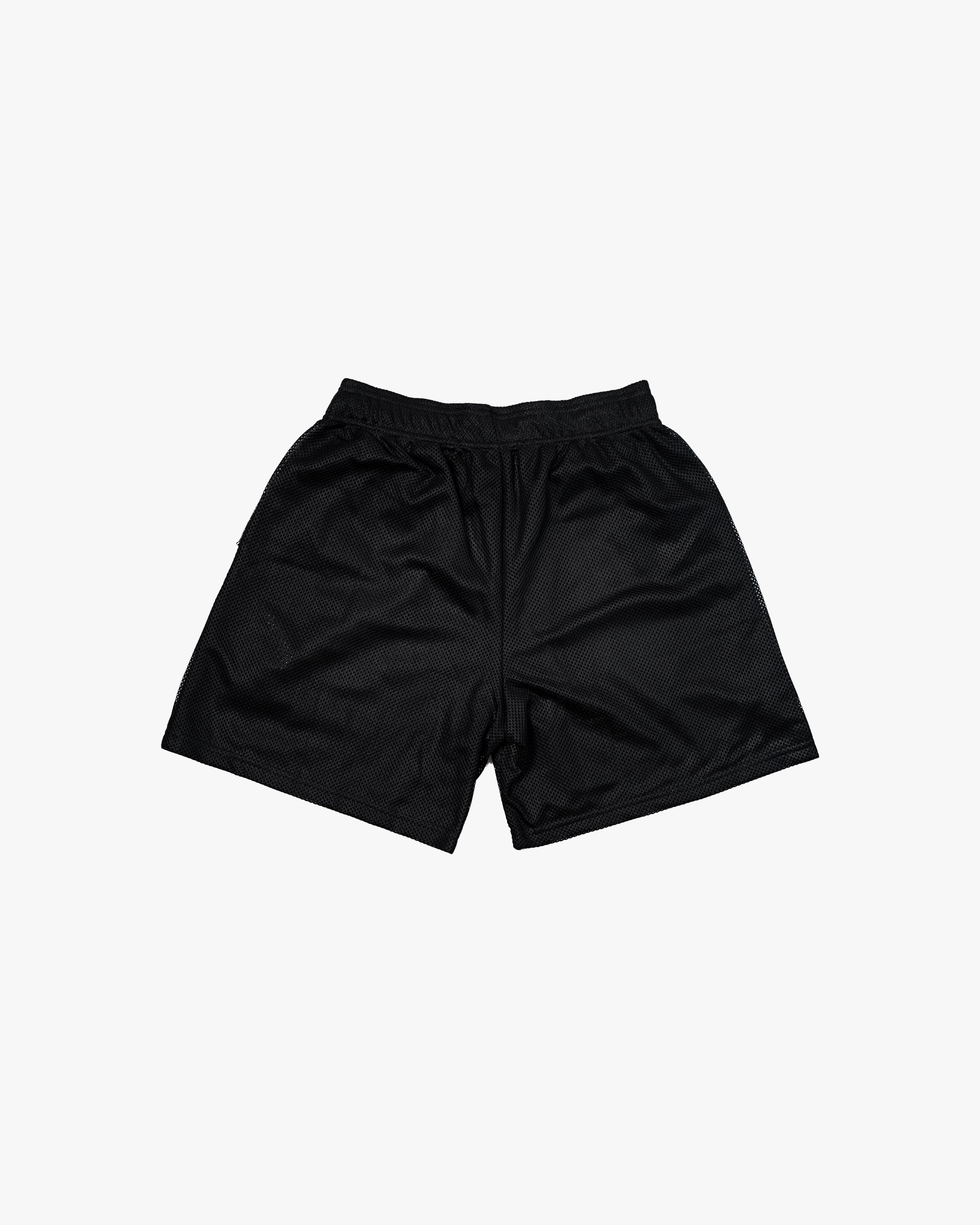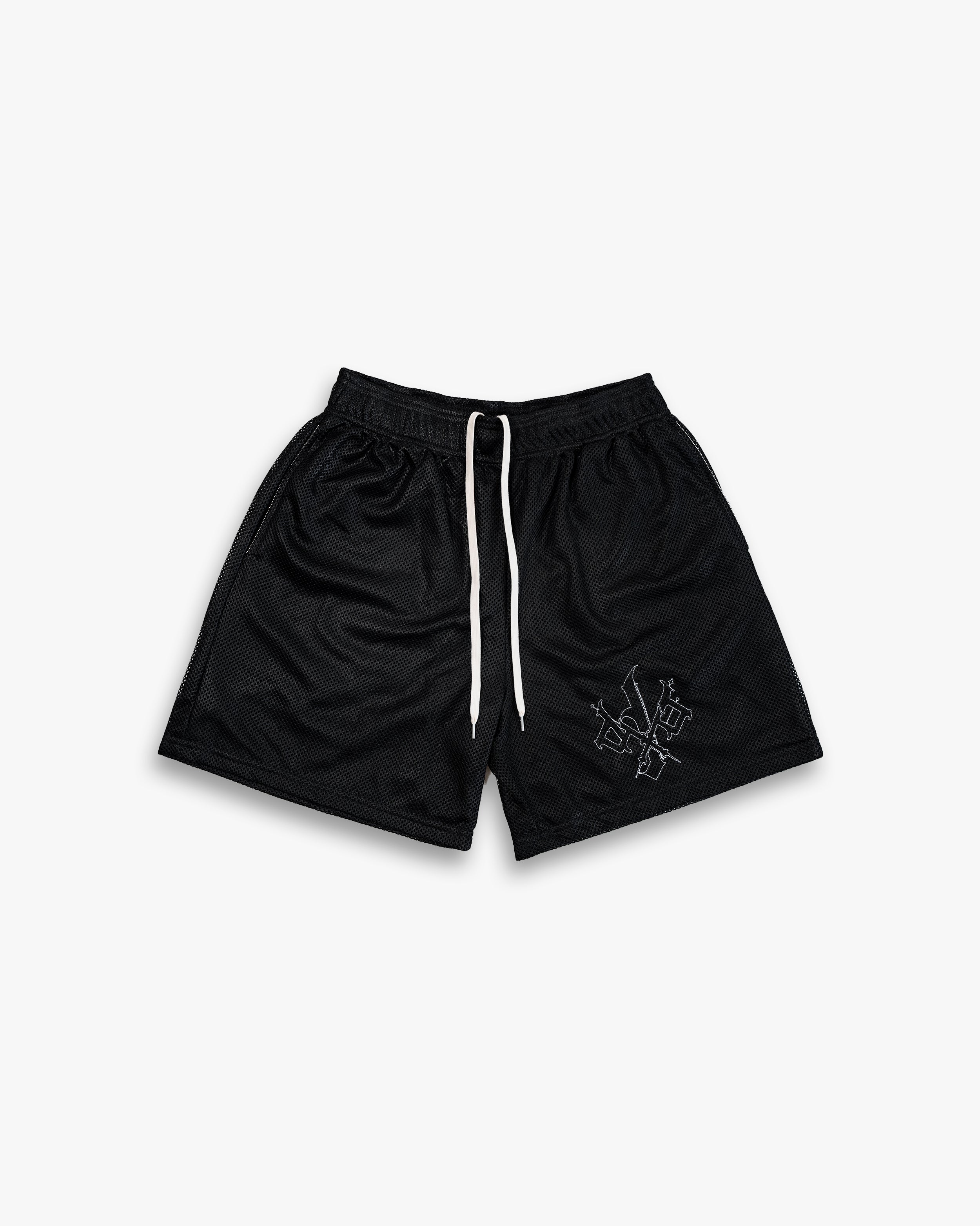 MESH SHORTS WITH DRAWSTRING & EMBROIDERED INDELIBLE CREST.